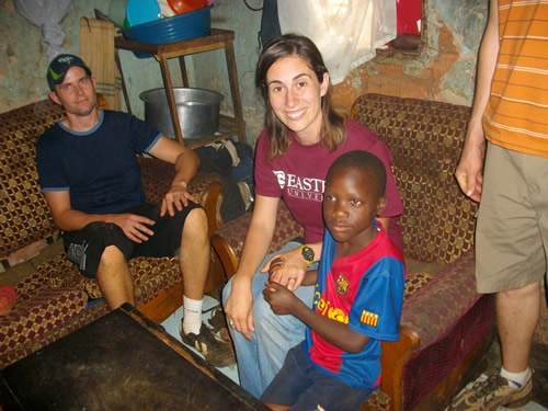 We walk to a dead end where fifteen children line the outside of one child's house. Our leader, Ivan, has brought us to see where and how the children live. I cannot make it inside the first house because there are too many kids. Two girls are fighting over me in Luganda. "She's my friend," says one. "No she's mine," says the other. Moussa informs me of the conversation as one girl stands up and takes my hand. She starts pushing her fingers against each of my fingernails-- I wonder if she realizes how deep her touch travels and unravels my soul.